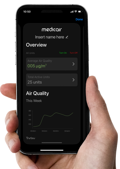 Discover MedicAir's industry-leading air purification, verified by Airmid Health Group's independent testing